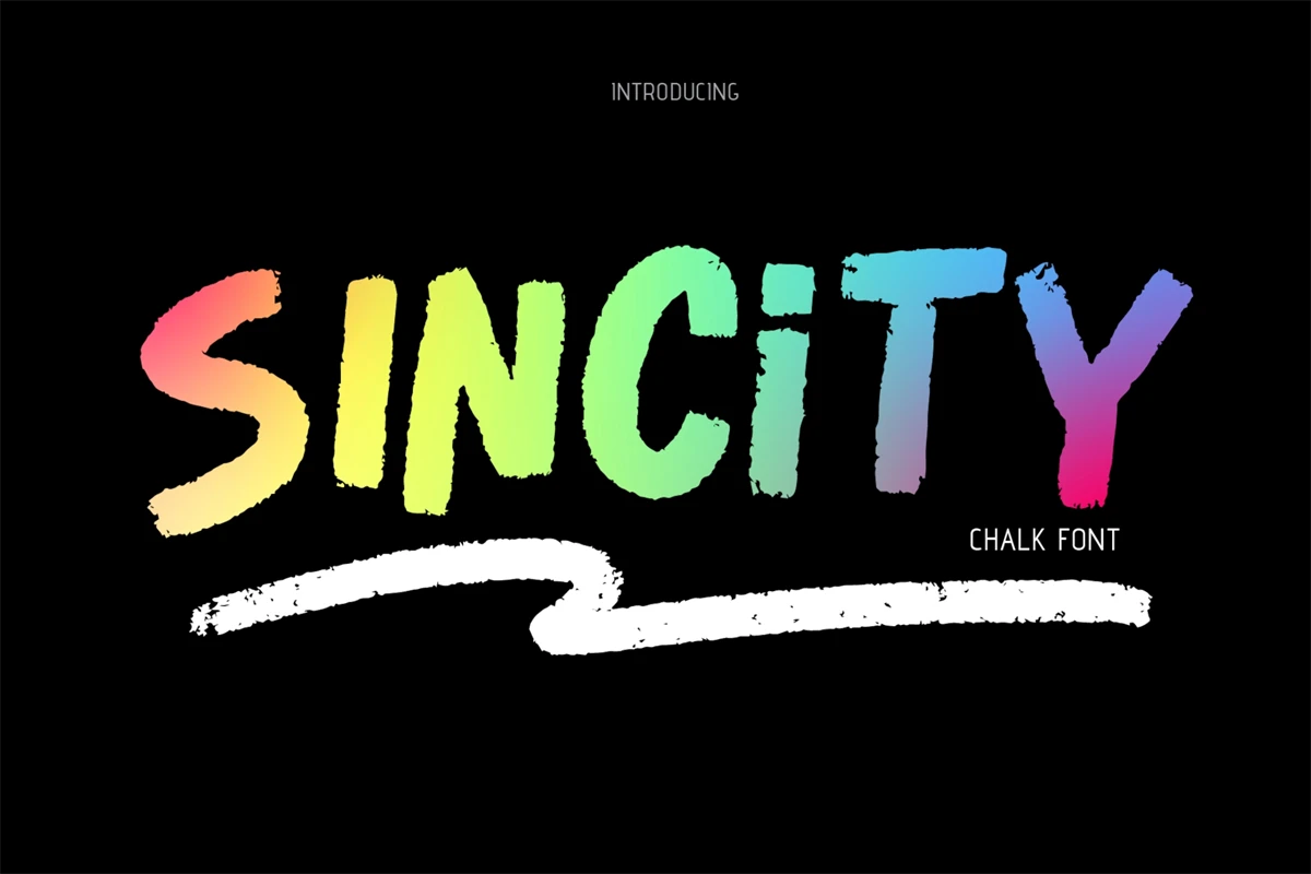Sincity is a cool chalked display font, featuring a street art vibe. This font is suitable for designs such as t-shirts, logos, advertisements, clothing, and more.