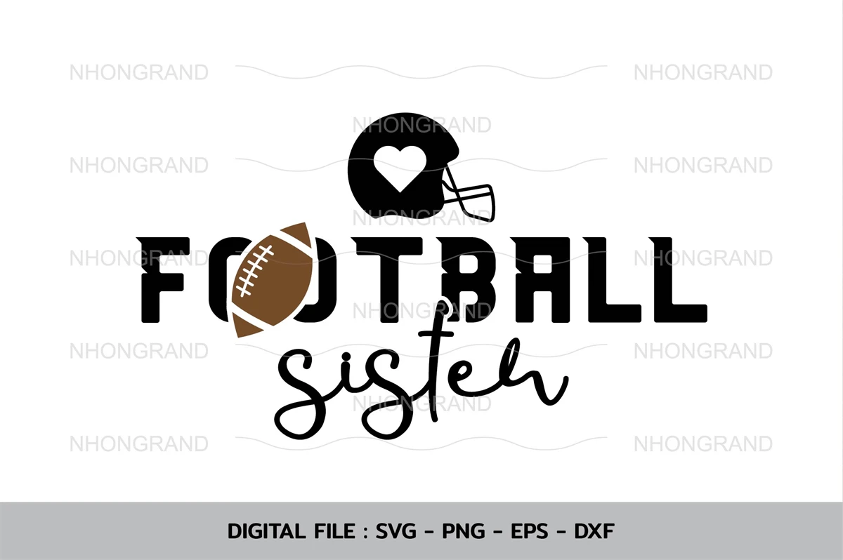 sister love american football with heart and helmet, lover gift, t-shirt, Cricut Files, svg, png, eps, dxf, Instant Download