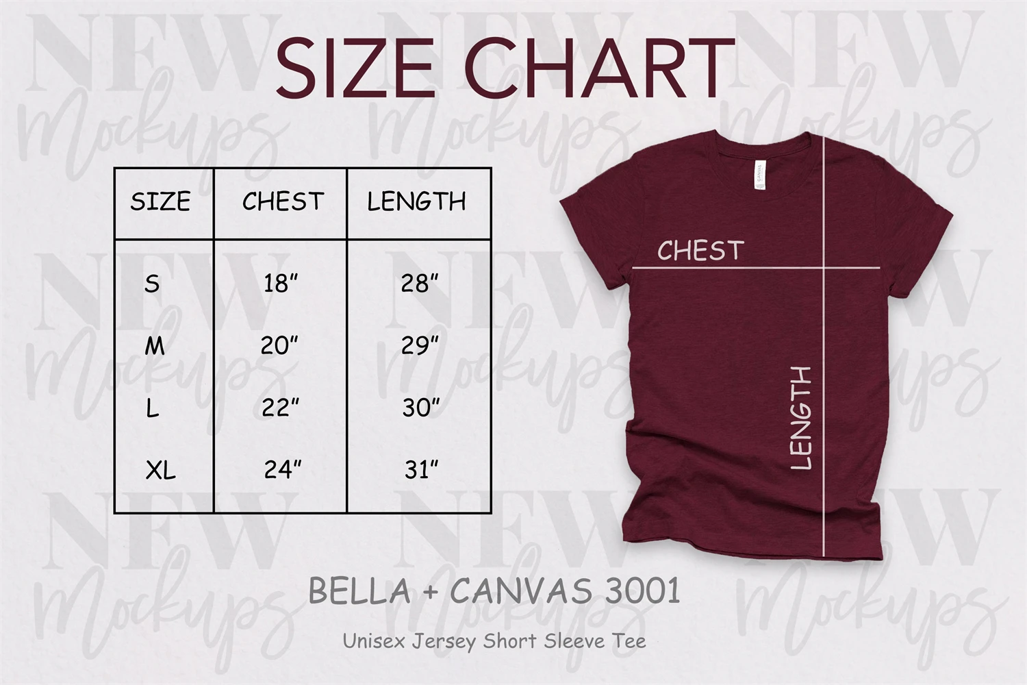 Bella Canvas 3001 Heather Cardinal Red T-Shirt Mockup
