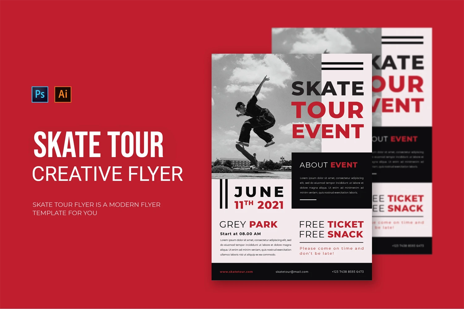 Skate Tour - Flyer. This Flyer template is designed for your company's business needs. very clean and elegant, and also easily edited and adjusted to your liking