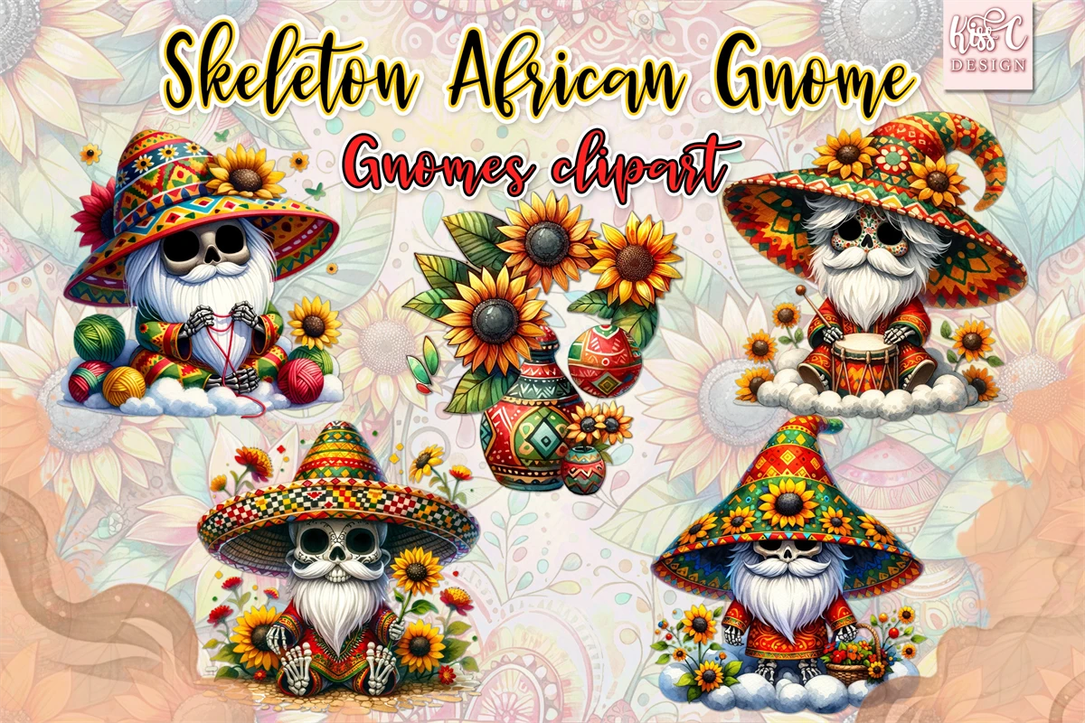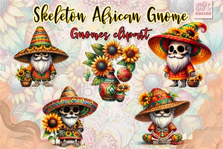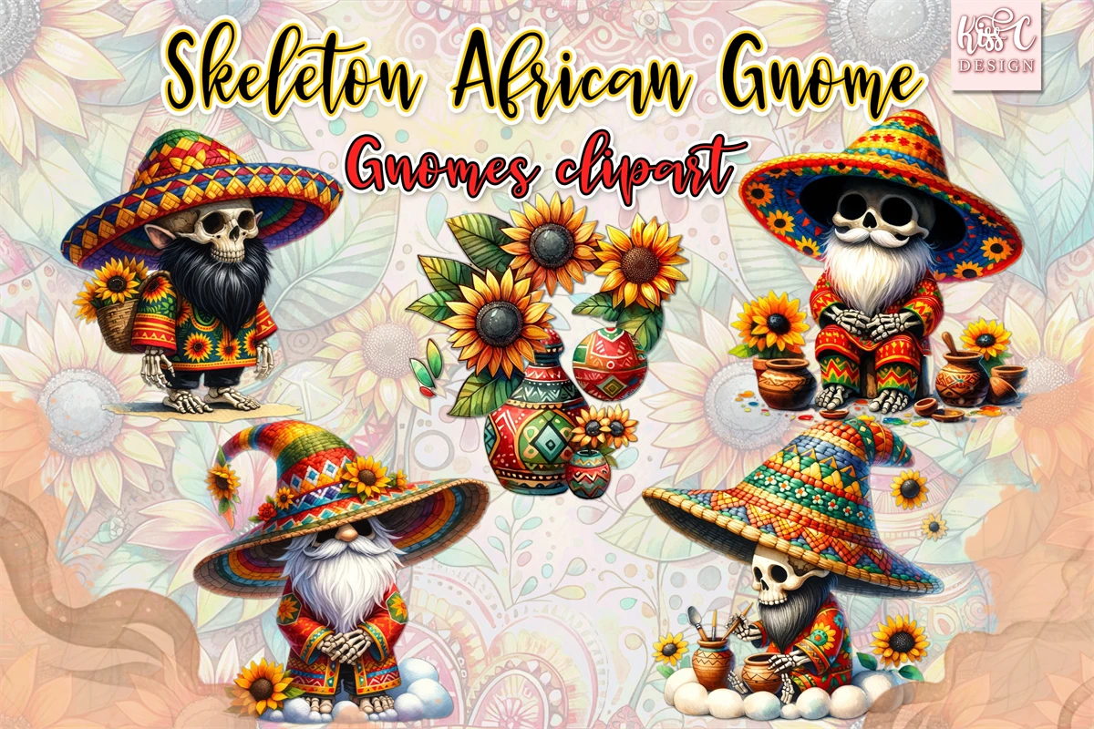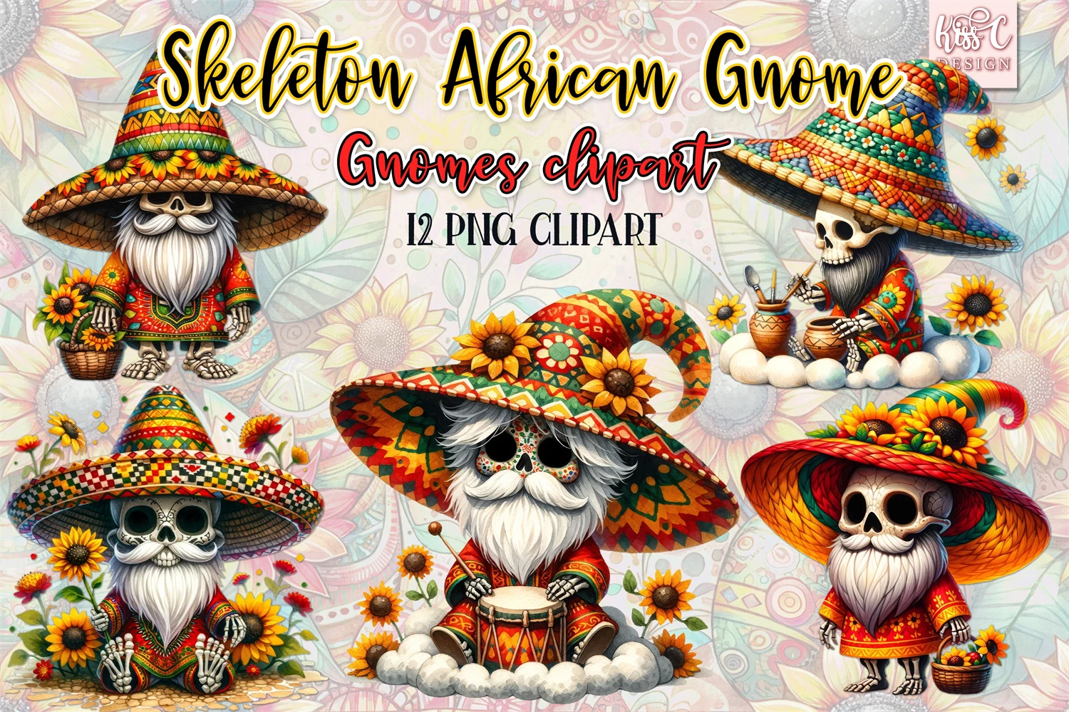 Celebrate Black History Month with our Adorable Skeleton African Gnomes Clipart Collection!