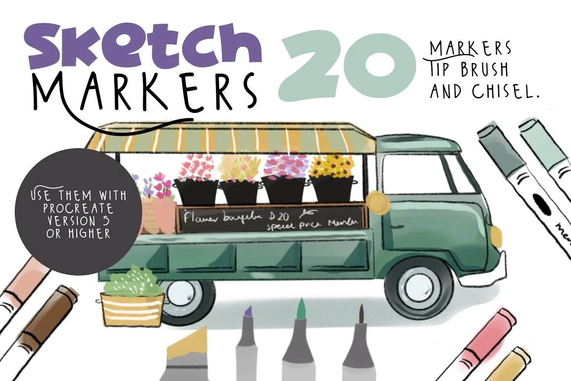 Now you can try what it's like to sketch with brushes on your ipad. This set includes markers with brush tip and chiselled.
