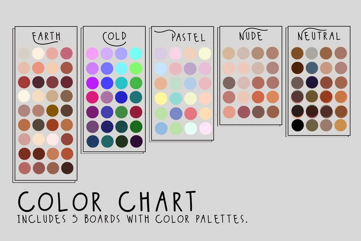 5 color charts para usar las paletas de colores que puedes encontrar en este tipo de marcadores.