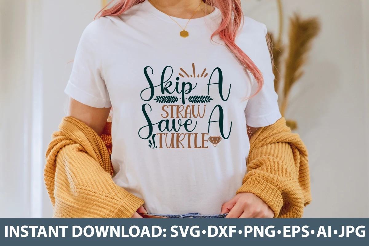 Skip A Straw Save A Turtle SVG Bundle Design, Earth Day