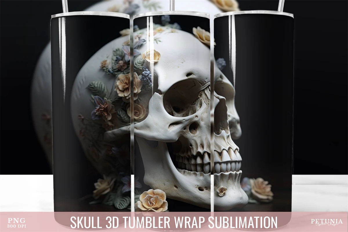 Skull 3D Tumbler Wrap 20 oz Skinny Tumbler Sublimation