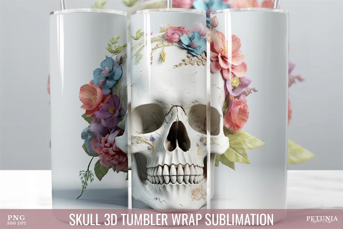 Skull 3D Tumbler Wrap 20 oz Skinny Tumbler Sublimation