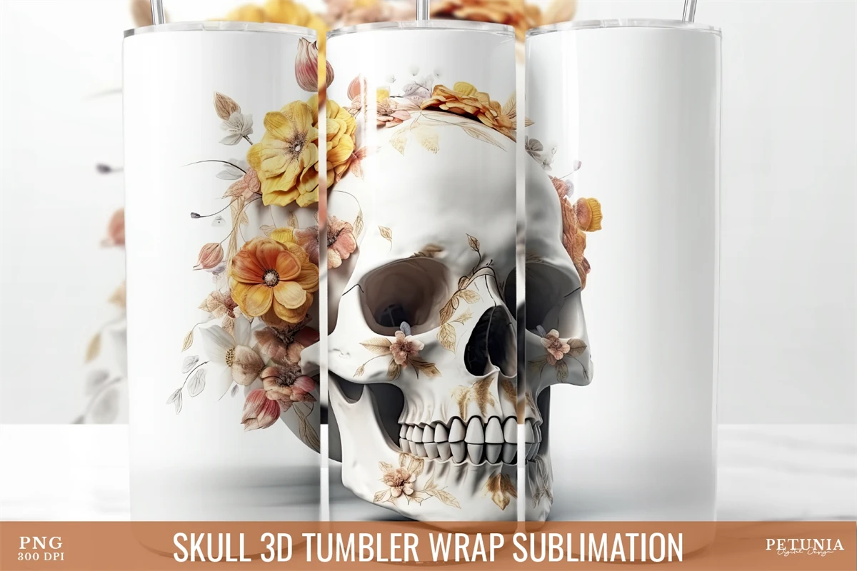 Skull 3D Tumbler Wrap 20 oz Skinny Tumbler Sublimation
