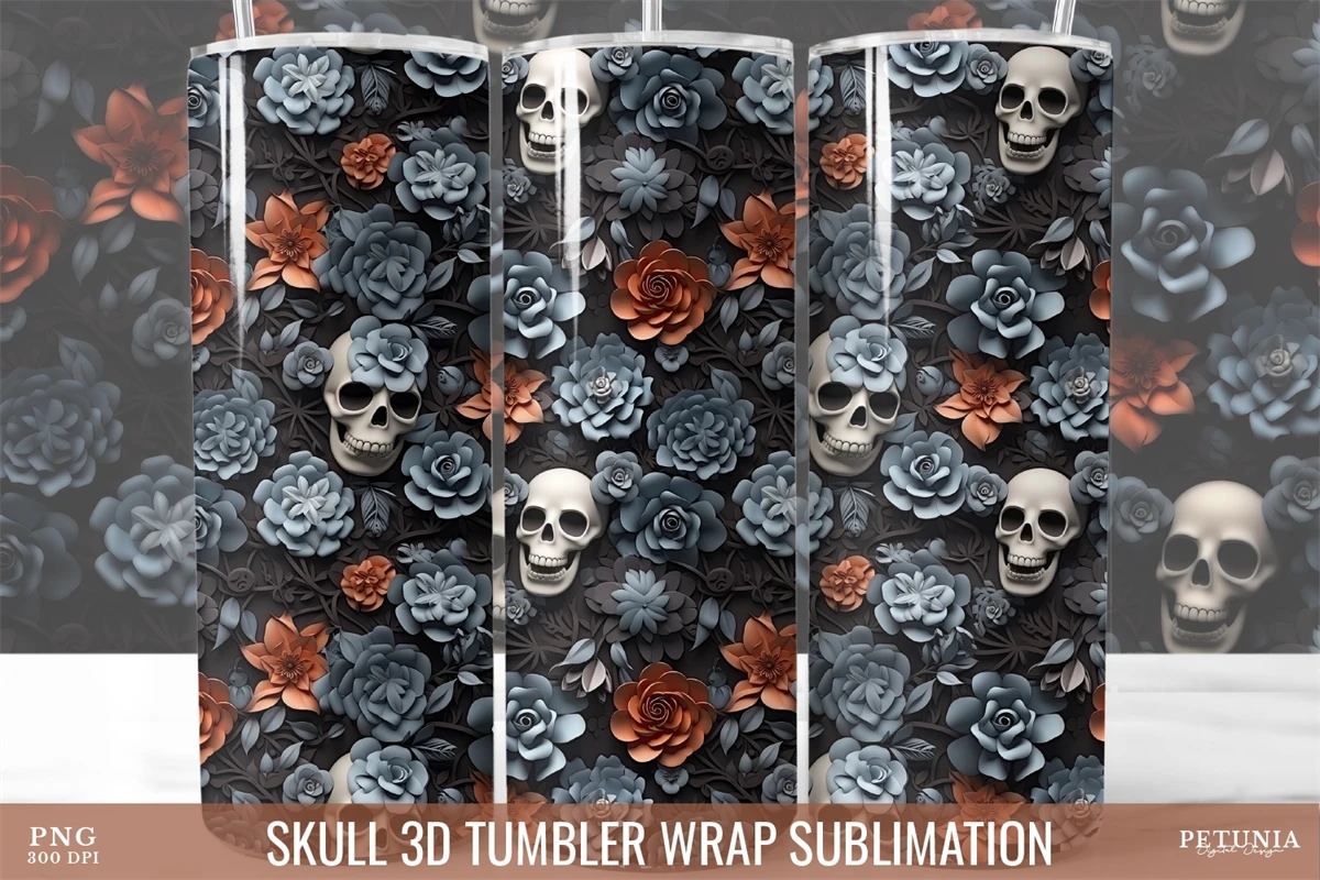 Skull 3D Tumbler Wrap 20 oz Skinny Tumbler Sublimation