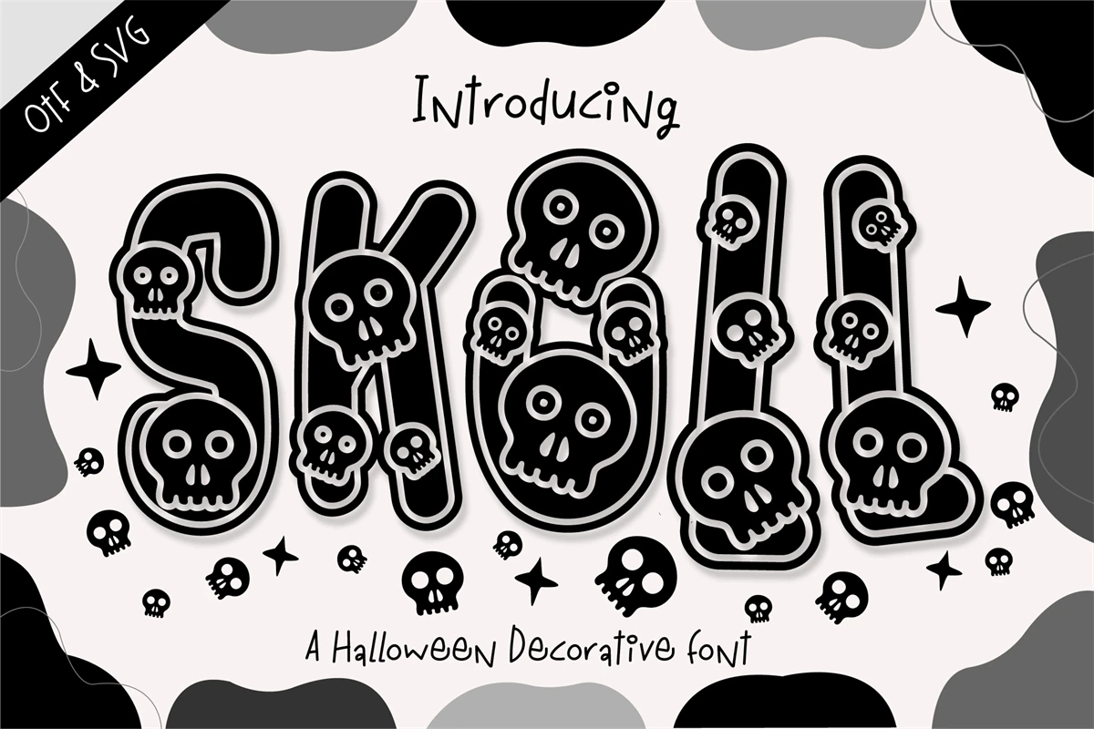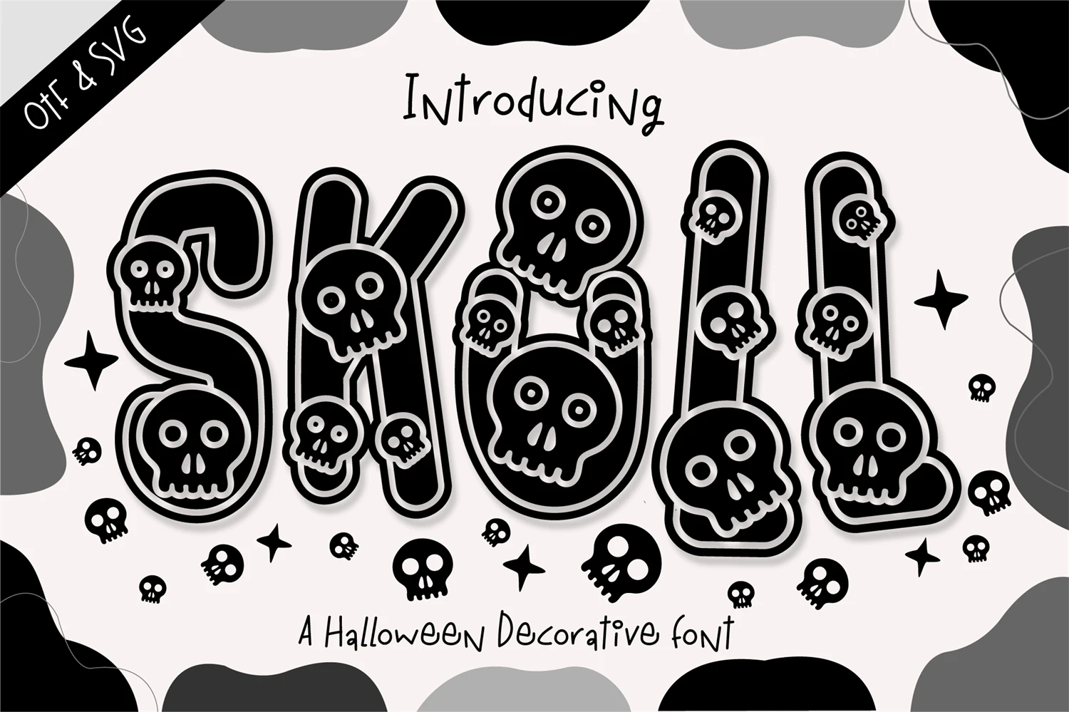 Skull Font is a captivating and Cute Halloween decorative font that adds a playful and enchanting touch to your designs. This delightful font features charmingly designed skulls with a whimsical twist, making it perfect for Halloween-themed projects, spooky invitations, eerie decorations, and so much more.