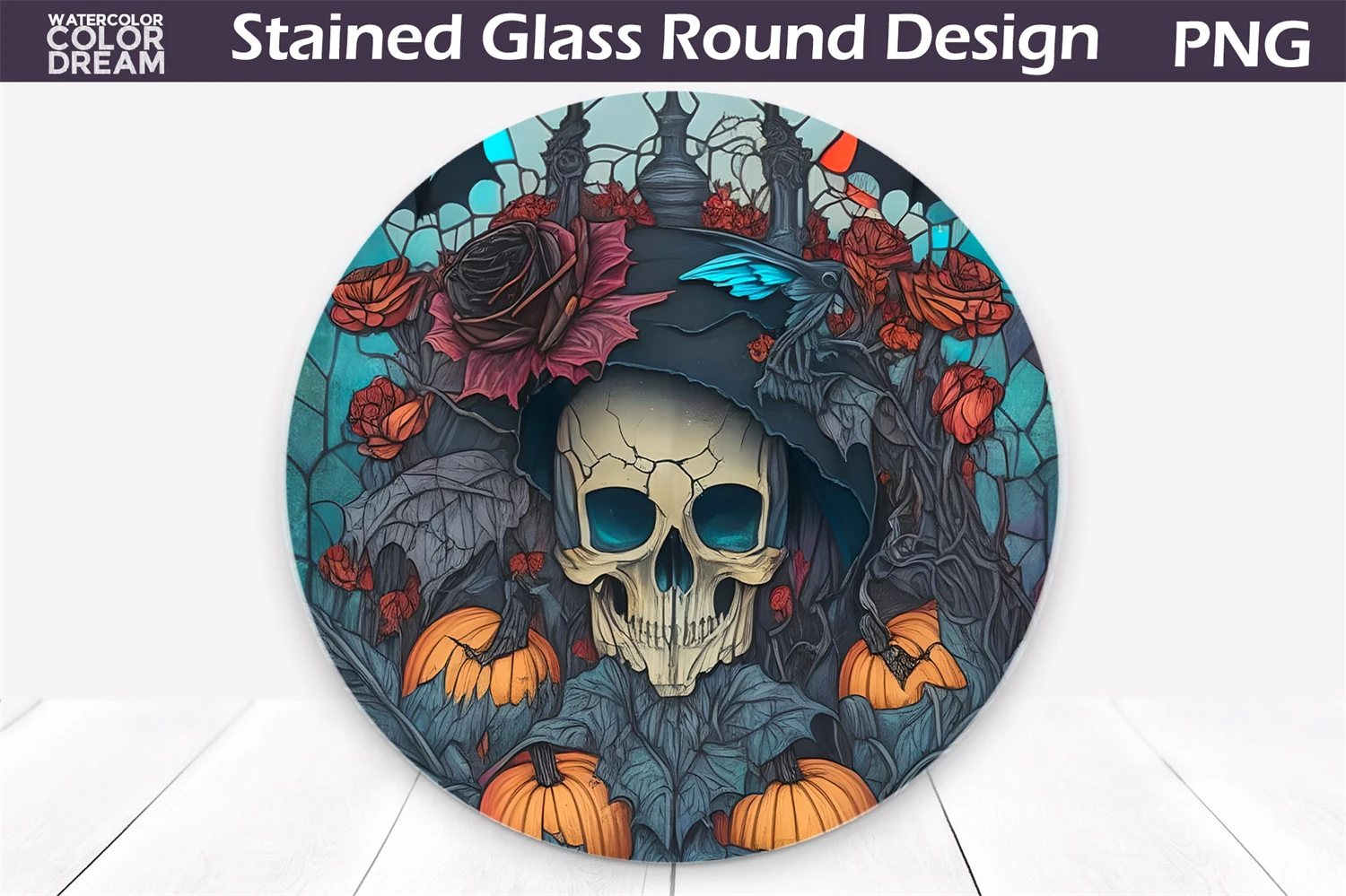 Skull Stained Glass PNG. Stained Glass Skull Round