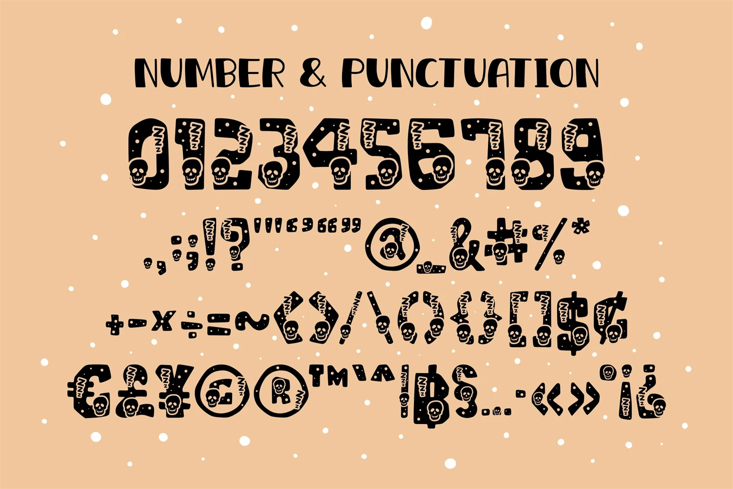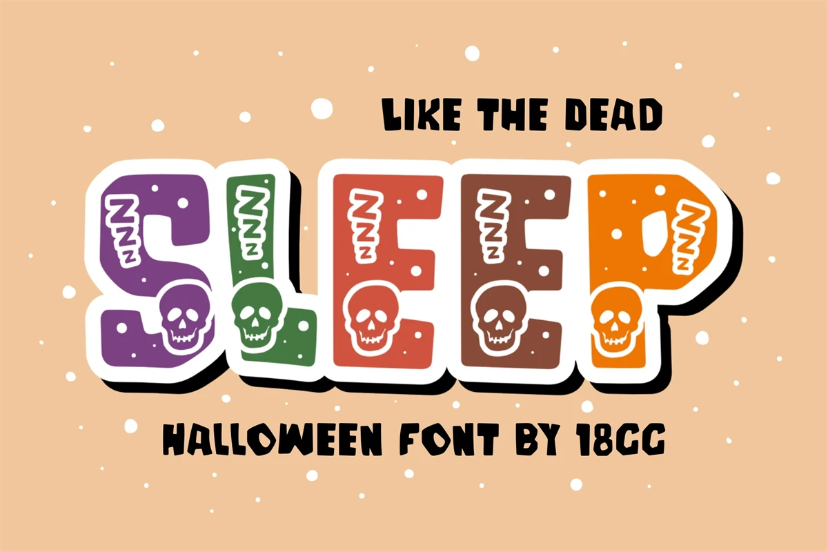 Sleep Like the Dead is a funny halloween theme font. Whimsical and a little bit mysterious, this font is perfect for all your Halloween projects.