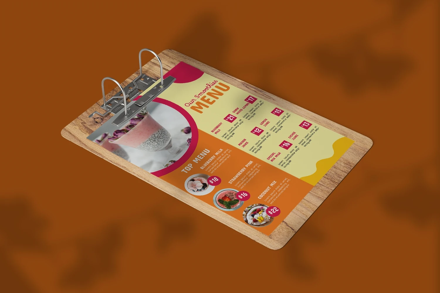 Menu Restaurant Template is a menu template for people who sell, business, or run a food-related business. The layout makes it easy to find the menu you want. Too many choices can make customers feel overwhelmed, so its better to limit the number of choices, colors, and other design elements so that customers can easily scan and order items.