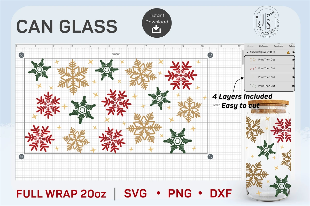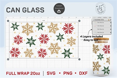 Snowflakes SVG, 20oz can glass, Christmas svg, snowflake beer can, vacation svg, Libbey glass png, Svg Files For Cricut, SILHOUETTE, Cricut, SVG, Iced Coffee Glass, SVG files for Cricut, Libbey beer glass, wrap SVG, SVG files, WRAP TEMPLATE, Full Wrap for Can Glass, Seamless Wraps, Digital Download, PNG Digital Download Template
