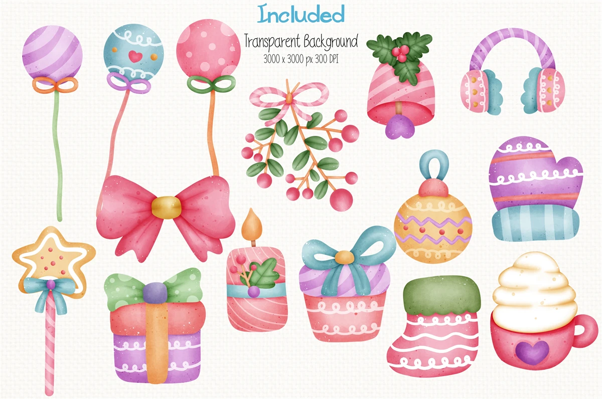 You can combine any elements of the set and create your own holiday cards and unique compositions