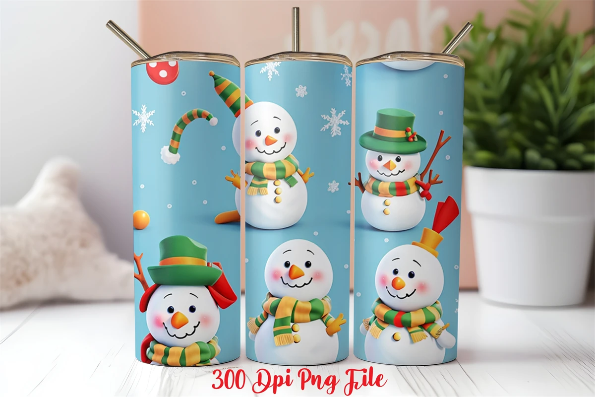Snowman Claus Pattern Tumbler Sublimation Wrap Designs PNG