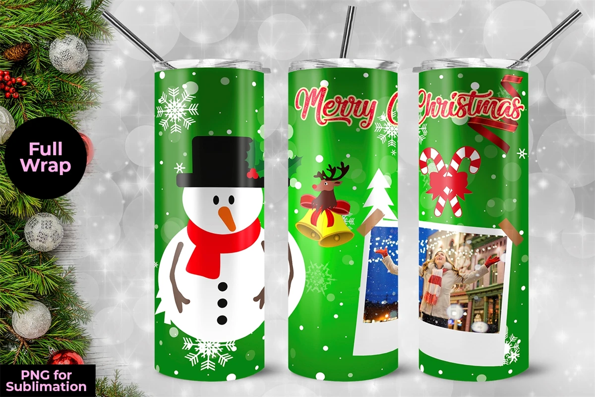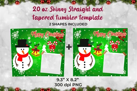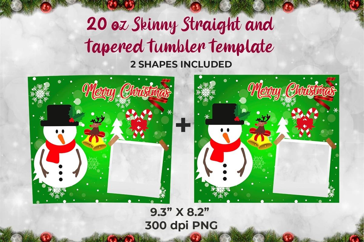 Snowman Merry Christmas Frame Skinny Tumbler Wrap Template