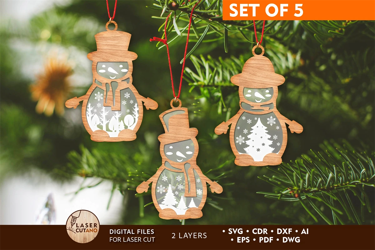 Snowman Laser Cut Christmas Digital multilayer layout files are specially prepared for the laser cut, CNC router machine and other cutting machines.