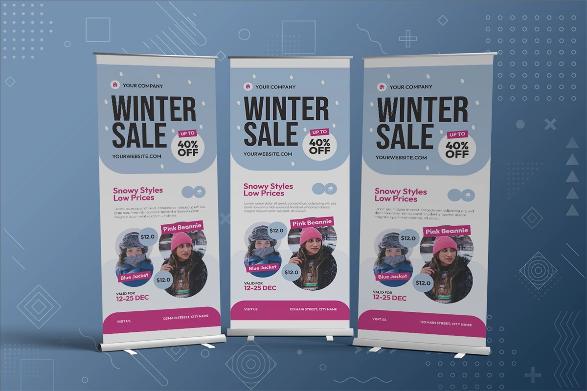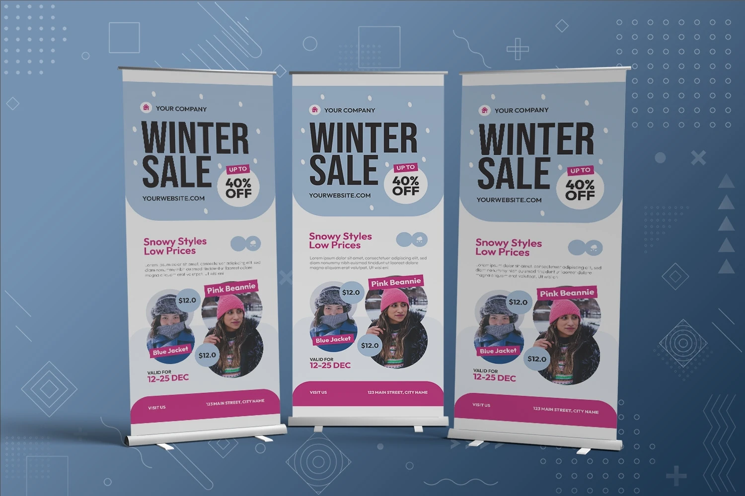Instantly communicate your brand's through our roll-up banner template. Its standout design is optimized for the impactful presentation of visuals and content alike.