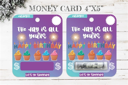 Usage: Print & cut the design you wish to use. Please remember to insert the amount of money you are going to use before printing or you can just write it down with a marker after the print was completed. Add cash to the lip palm pouch(those can be ordered from amazon) and glue it to the surface of the card on the box between the dollar signs. Gift it to your loved ones!