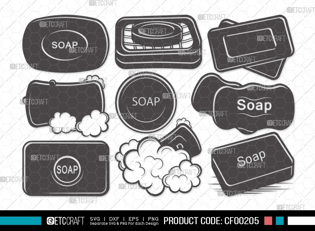 Elevate your creative projects with our Soap Silhouette Bubbles Body Soap Bar Case Shower Tools SVG Cut File Bundle. Whether you're a soap maker, a DIY enthusiast, or a design aficionado, this versatile digital design collection is a must-have for your creative toolbox.