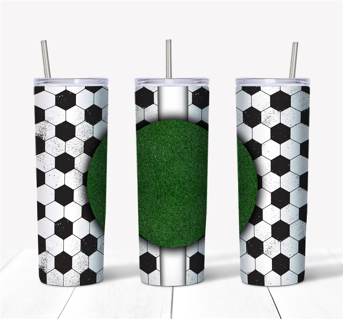 Soccer Ball Background Grass Circle Tumbler Wrap