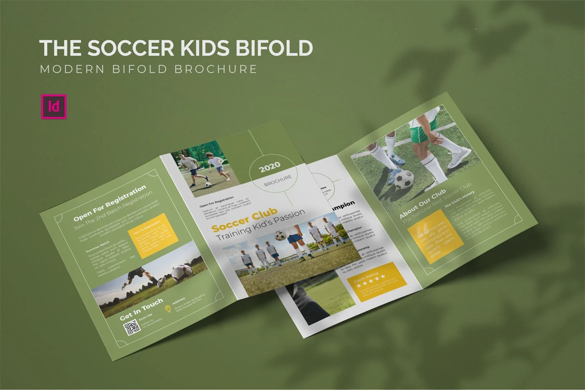 Soccer Kids - Bifold Brochure We present this Bifold Brochure for you, simple and very elegant, and this Bifold Brochure is suitable for all types of your business, made with adobe inDesign, very easy to customize, Hope you Like it, dont forget to rate, Thanks.