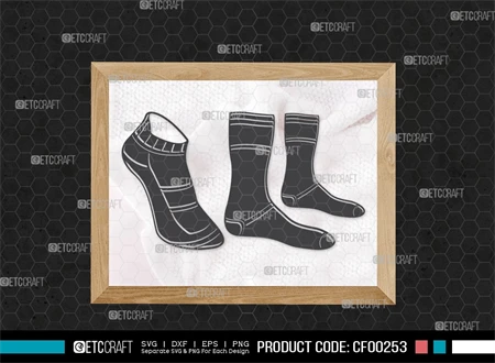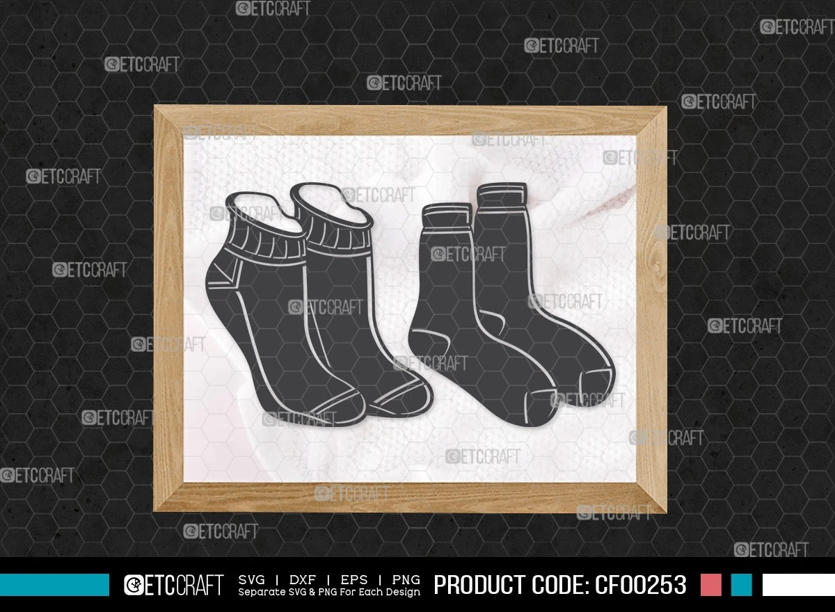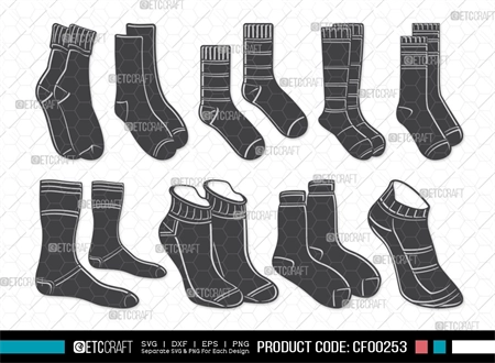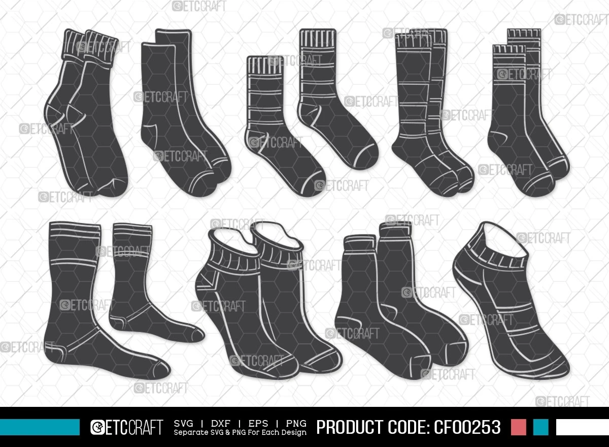 Elevate your creative endeavors with our Sock Silhouette Half Crew Ankle Warm Feet Shape SVG Cut File Bundle. This thoughtfully curated bundle is your all-in-one resource for crafting cozy and charming sock-themed designs, featuring half crew and ankle sock silhouettes.
