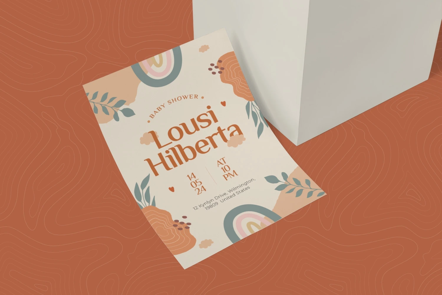This baby shower invitation card template makes your invitation card look enjoyable, professional, and also simple. It's perfect for parents who want to celebrate the birth of their baby. You can easily to customize to your needs if using **illustrator** you just need to Drag your Image, select the image and placeholder, then right click select Make
