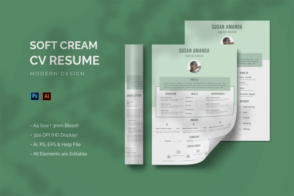 This is Soft Cream - CV Resume Get it now!, CV Resume for All business and personal needs. Great for your business and this design will make your interested, elegant, and easily editable according to your needs (Adobe Illustrator,Adobe Photoshop). You can use this CV Resume for personal purpose, or company purpose, I hope you enjoy for this, Hope you Like it dont forget to rate, Thanks.