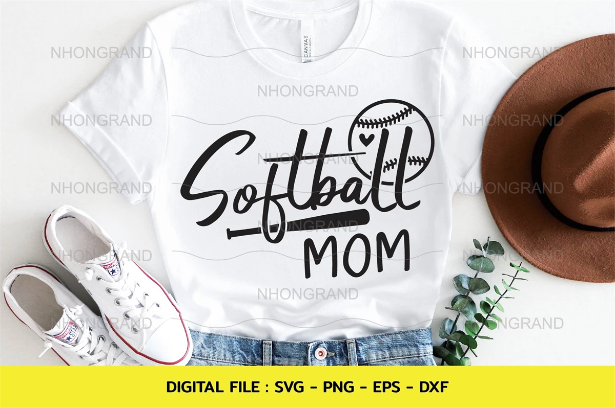 Softball mom with heart for mother's day sport softball shirt gift for mom t-shirt, Cricut Files, svg, png, eps, dxf, Instant Download