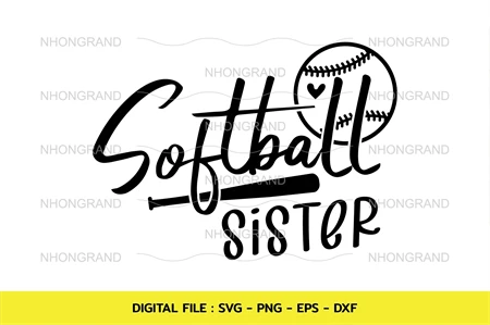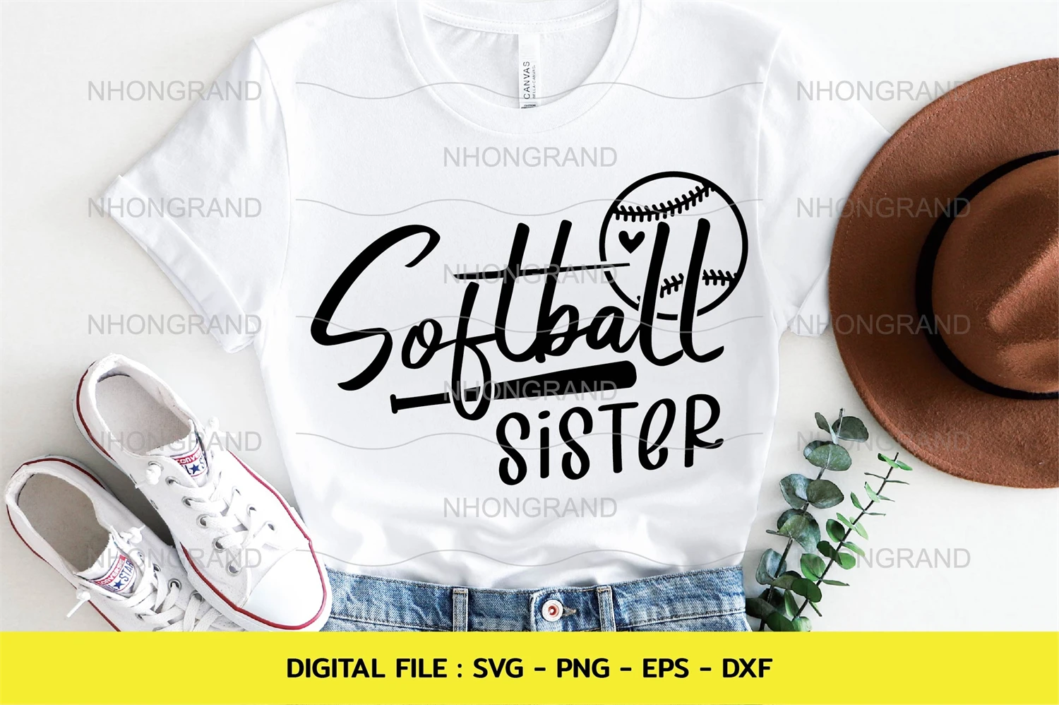 Softball sister with heart for sport softball shirt gift for sister t-shirt, Cricut Files, svg, png, eps, dxf, Instant Download