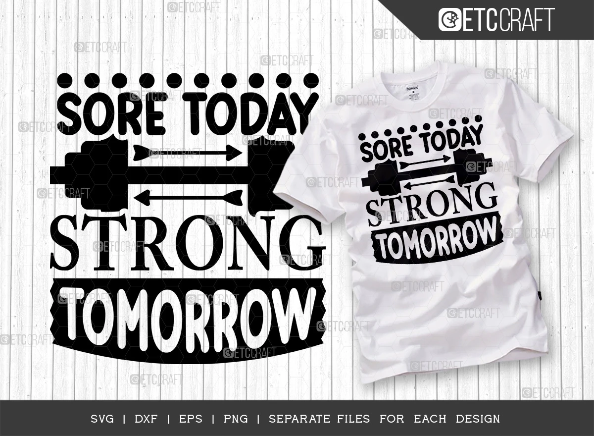 Inspire yourself and others with the powerful message of "Sore Today Strong Tomorrow." This design serves as a constant reminder of the dedication and perseverance required to achieve fitness goals.