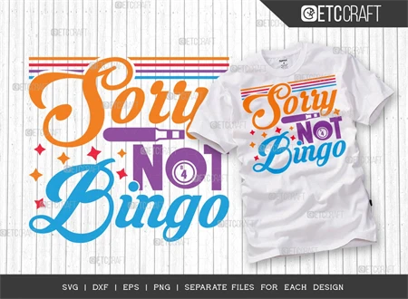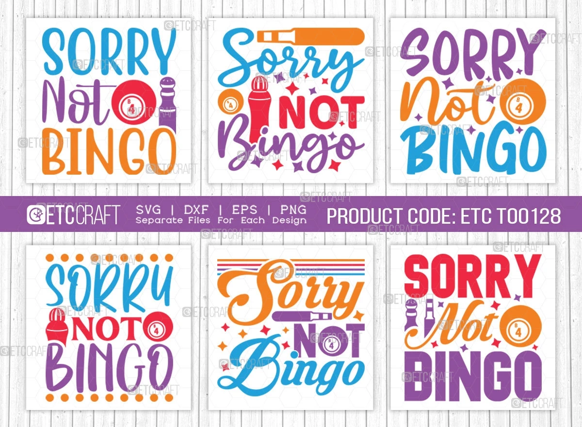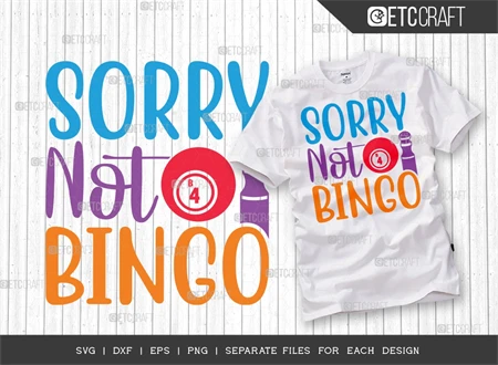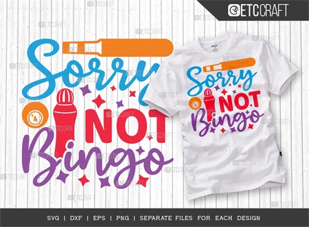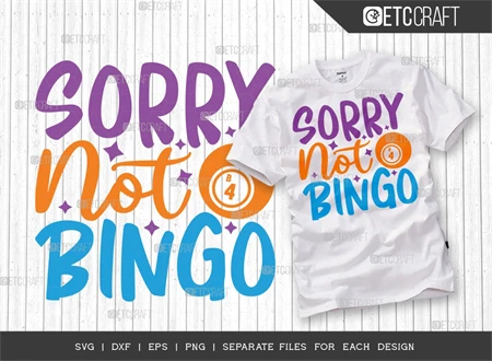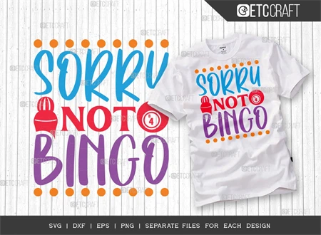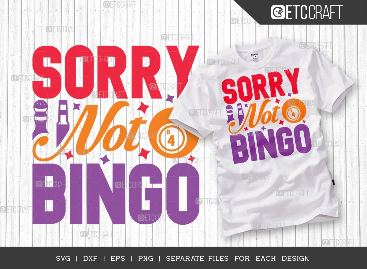 Introducing the Sorry Not For Bingo SVG Bundle! This hilarious t-shirt design is perfect for anyone who loves bingo but wants to make it clear that they're not to be bothered during game time.