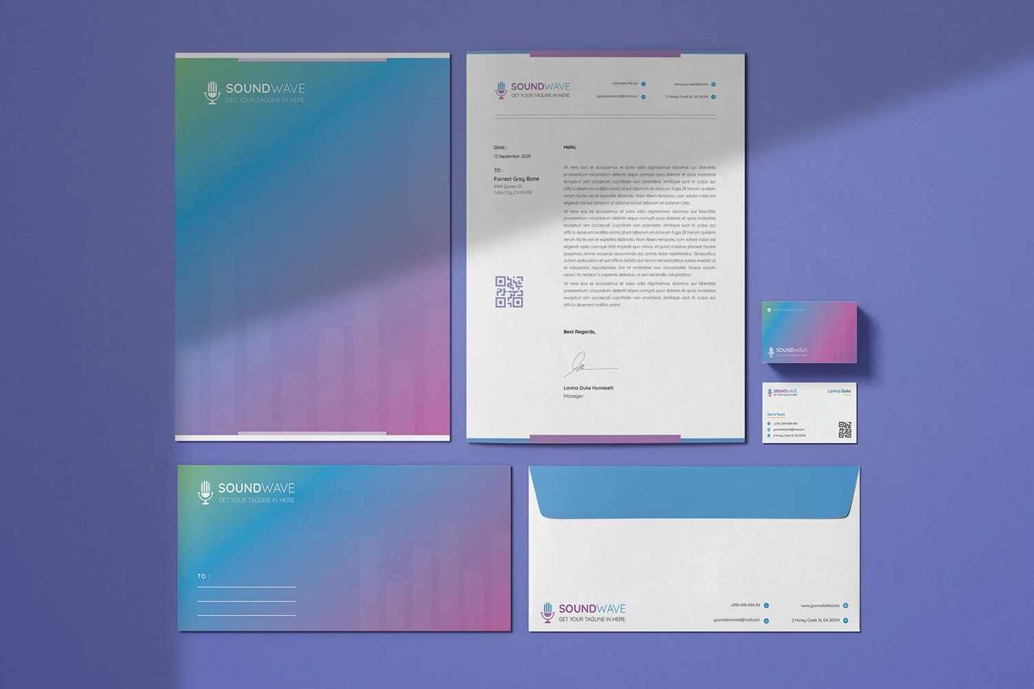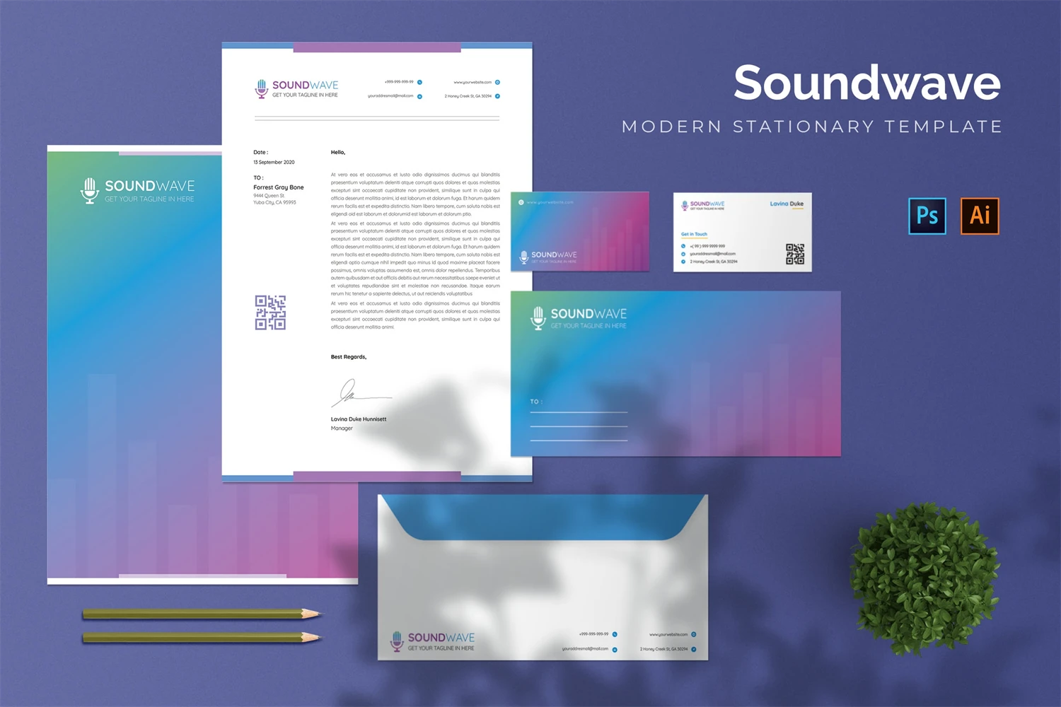 Soundwave - Stationary. This template is great for your business and this design will make your interested, elegant, and easily editable according to your needs. I hope you enjoy for this stationary.