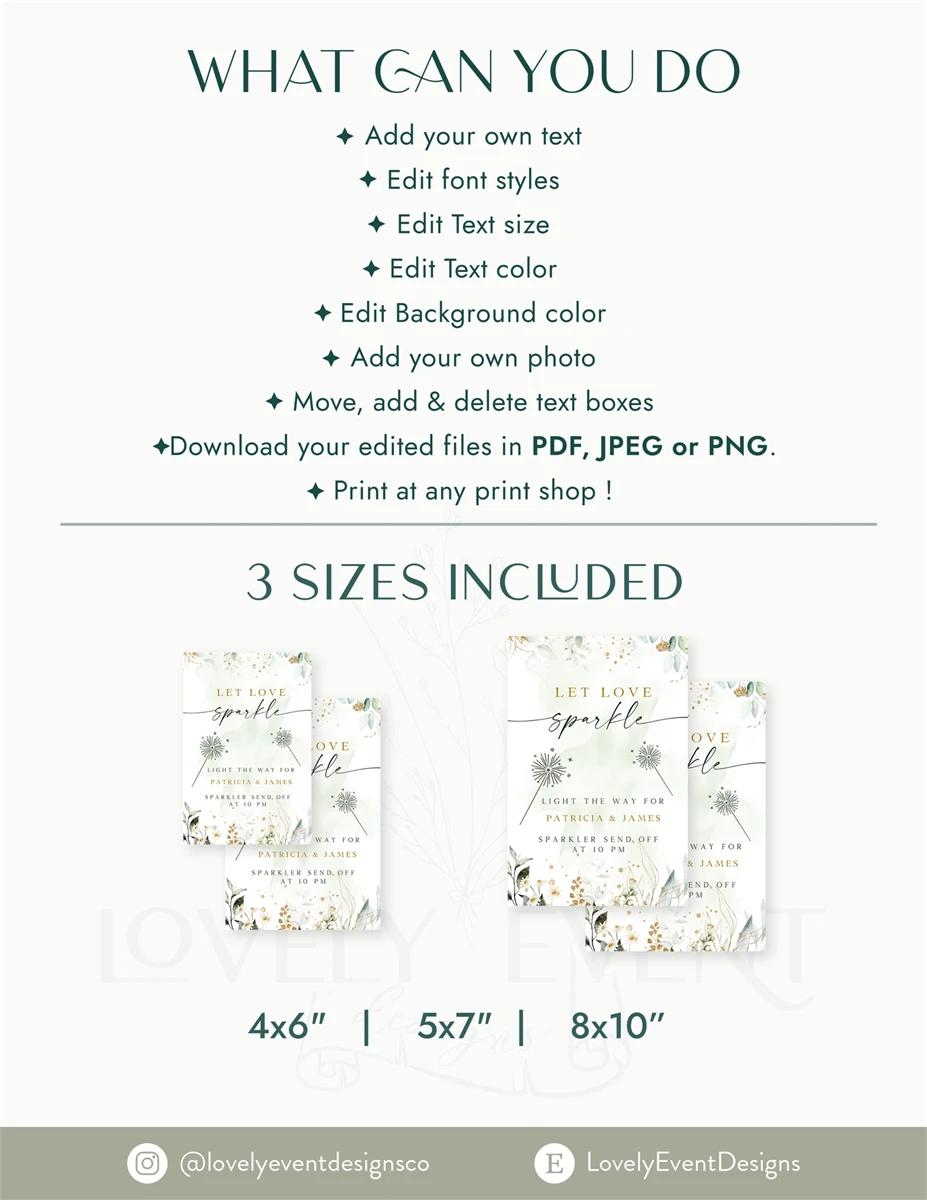Sparkler Send Off Sign Printable, Let Love Sparkle Sign, Mod