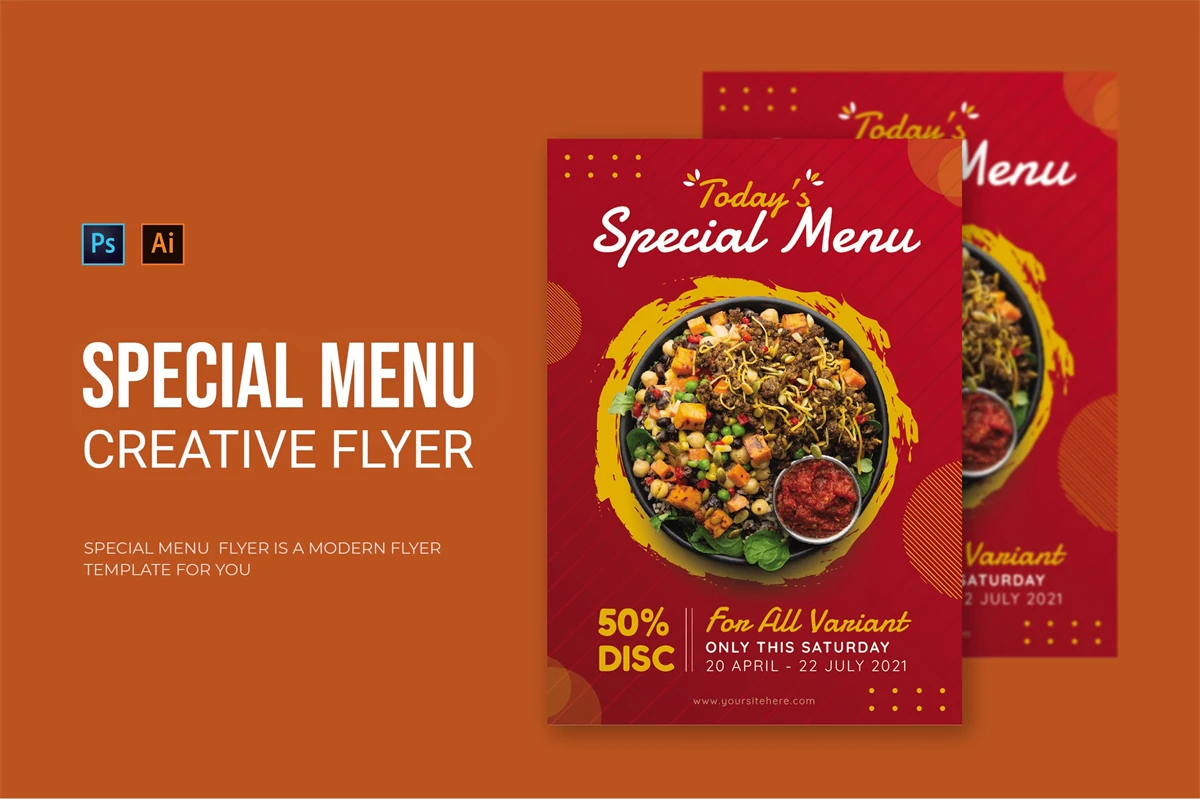 Special Menu - Flyer. This Flyer template is designed for your company's business needs. very clean and elegant, and also easily edited and adjusted to your liking