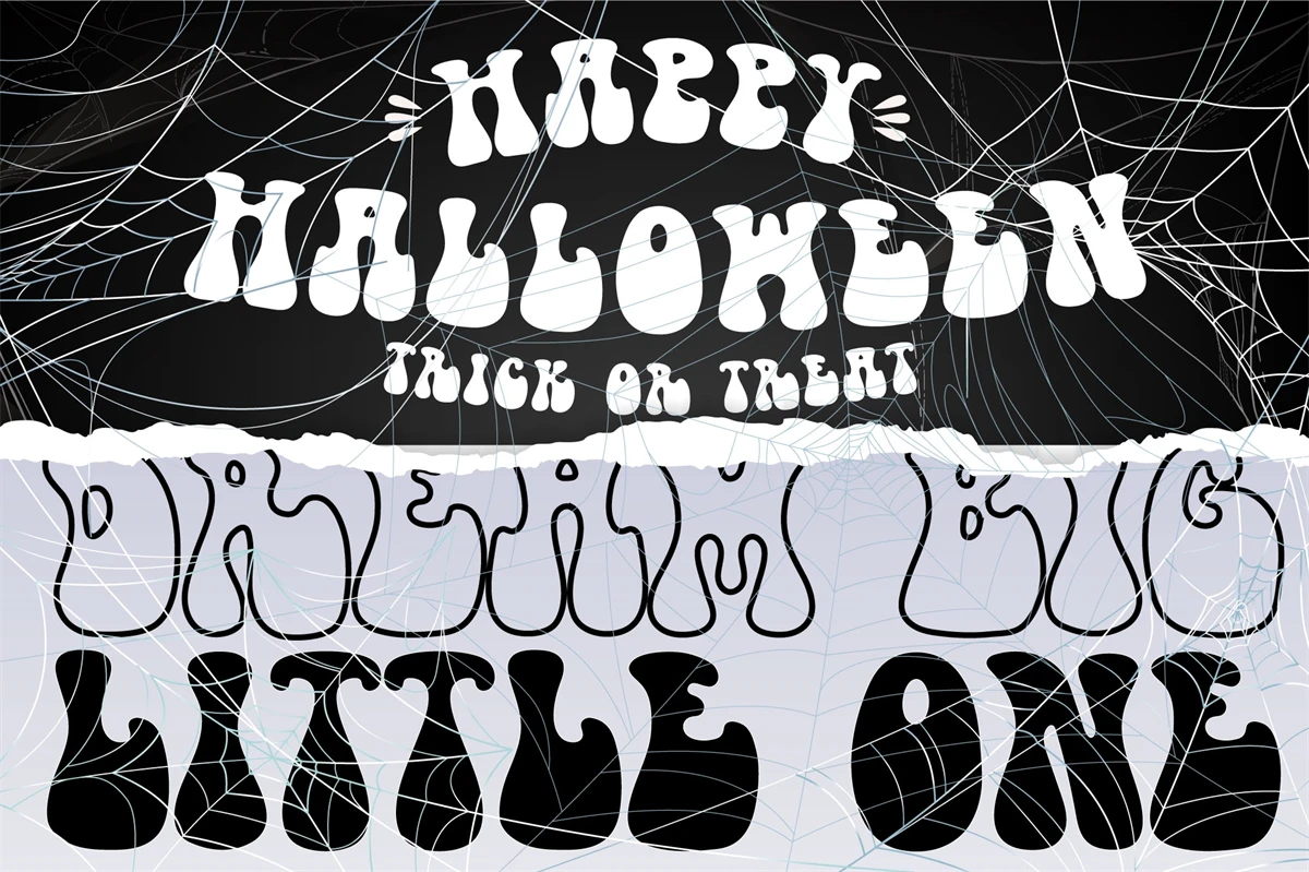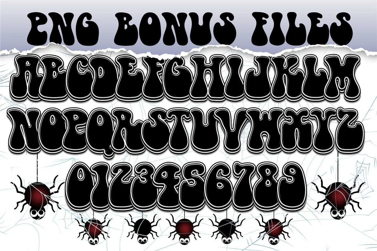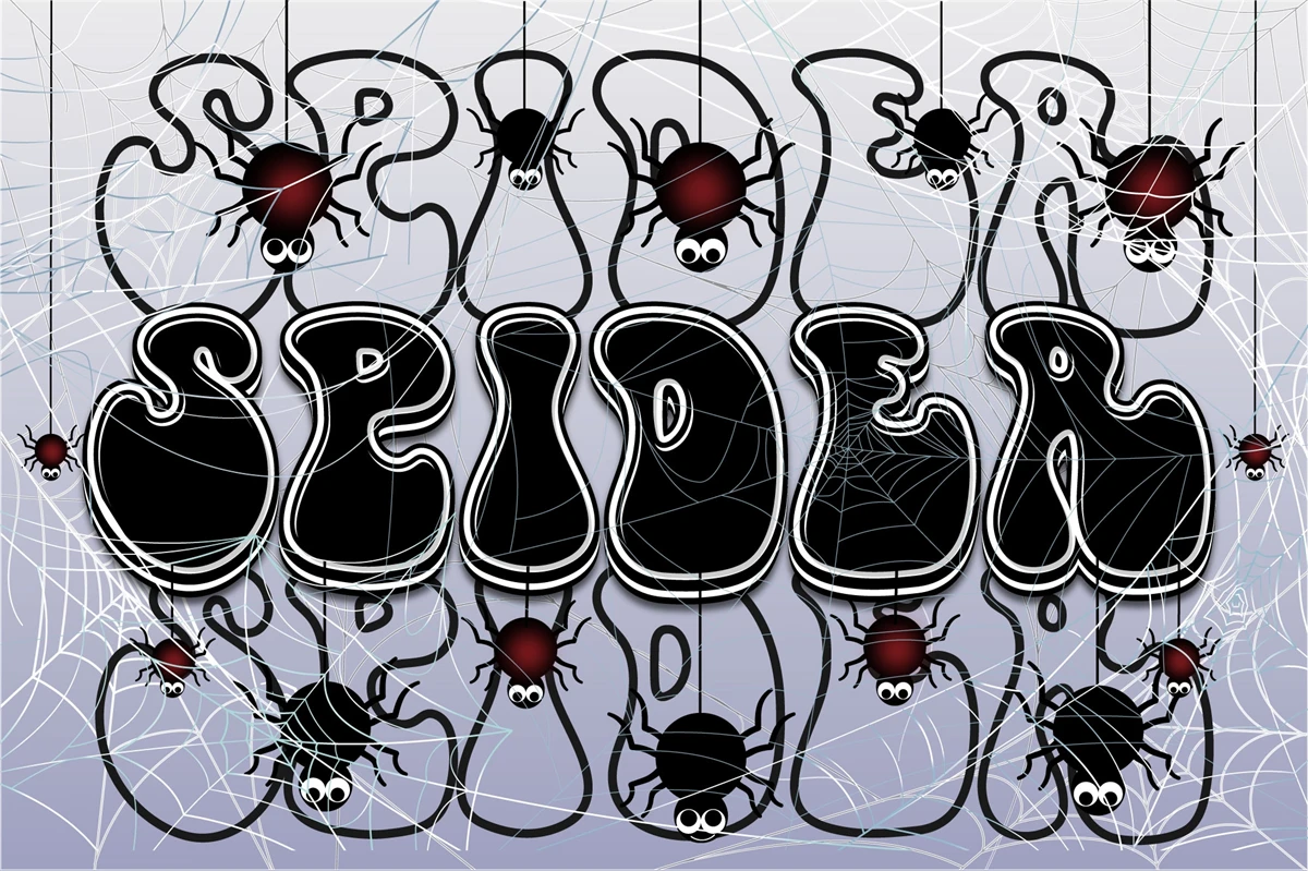 Spider Font is an exuberant display font that will infuse your designs with a joyful spirit! This unique typeface is perfect for adding a touch of cheerfulness to a variety of projects. Whether you're designing book covers, posters, Halloween-themed graphics, marketing materials, or anything that needs to grab attention, Spider Font will make your text come alive. With its captivating style and playful charm, it's sure to leave a lasting impression on your audience. Get ready to spin a web of creativity with Spider Font!