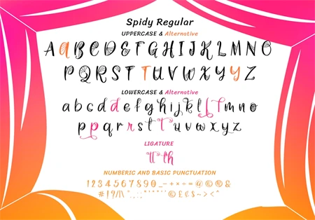 Spidy is a fun and uniquely shaped decorative font. It is ideal for Halloween designs or October parties. Add it confidently to your favorite creations and let yourself be amazed by the outcome generated.