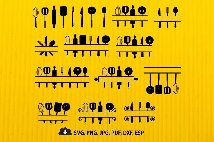 Split Kitchen Svg, Spoon Fork Knife Clipart, Kitchen, Kitchen Monogram Bundle, cooking, Kitchen Silhouette, Kitchen Frame, Cut file, Cricut