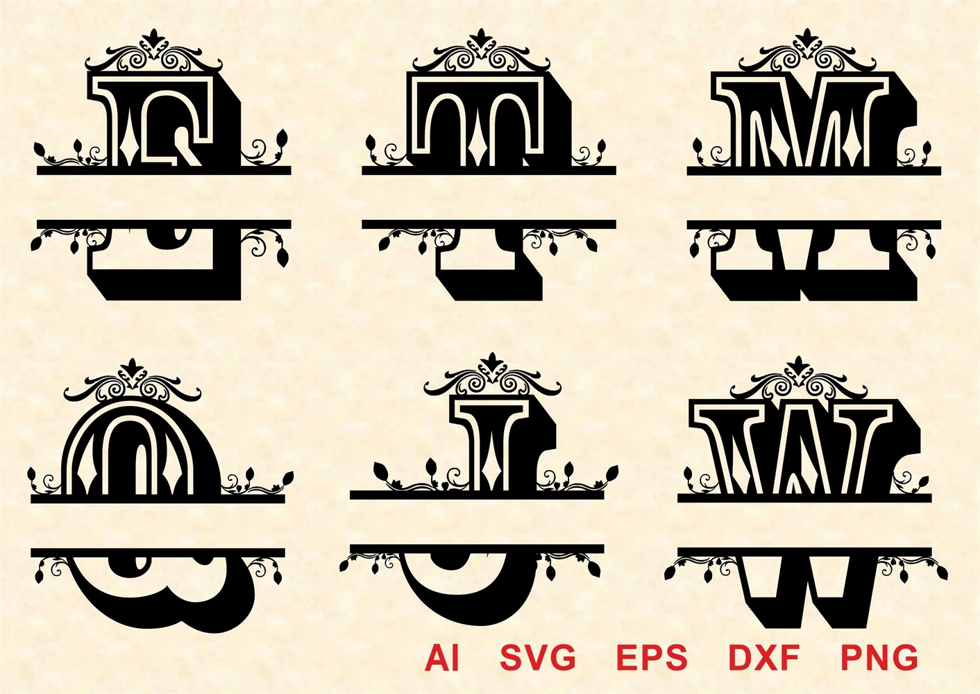 Split Monogram letters - Split Monogram Alphabet - Logos Svg