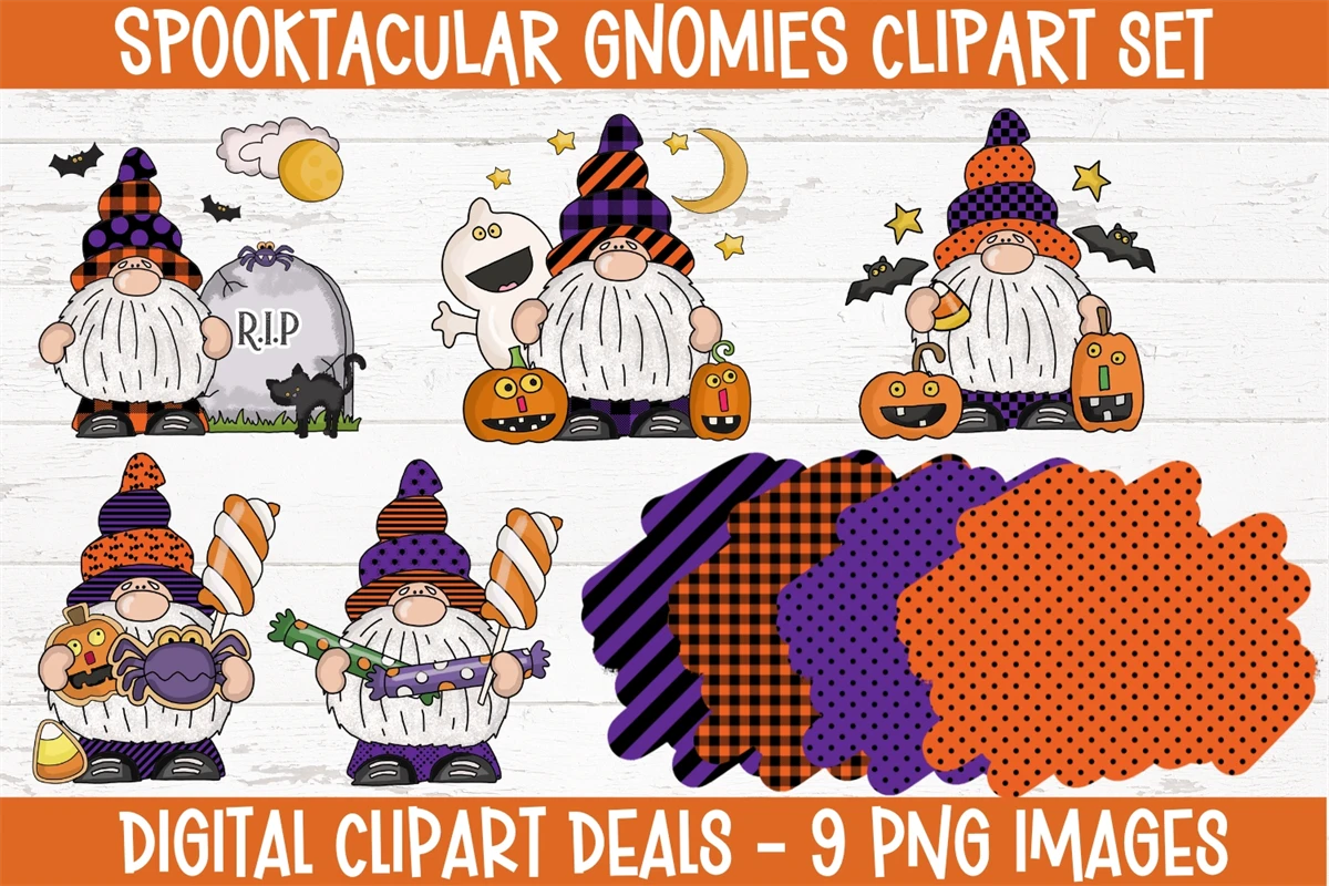 Introducing our "Spooktacular Gnomies Clipart Set - Halloween Gnomes Clipart"
