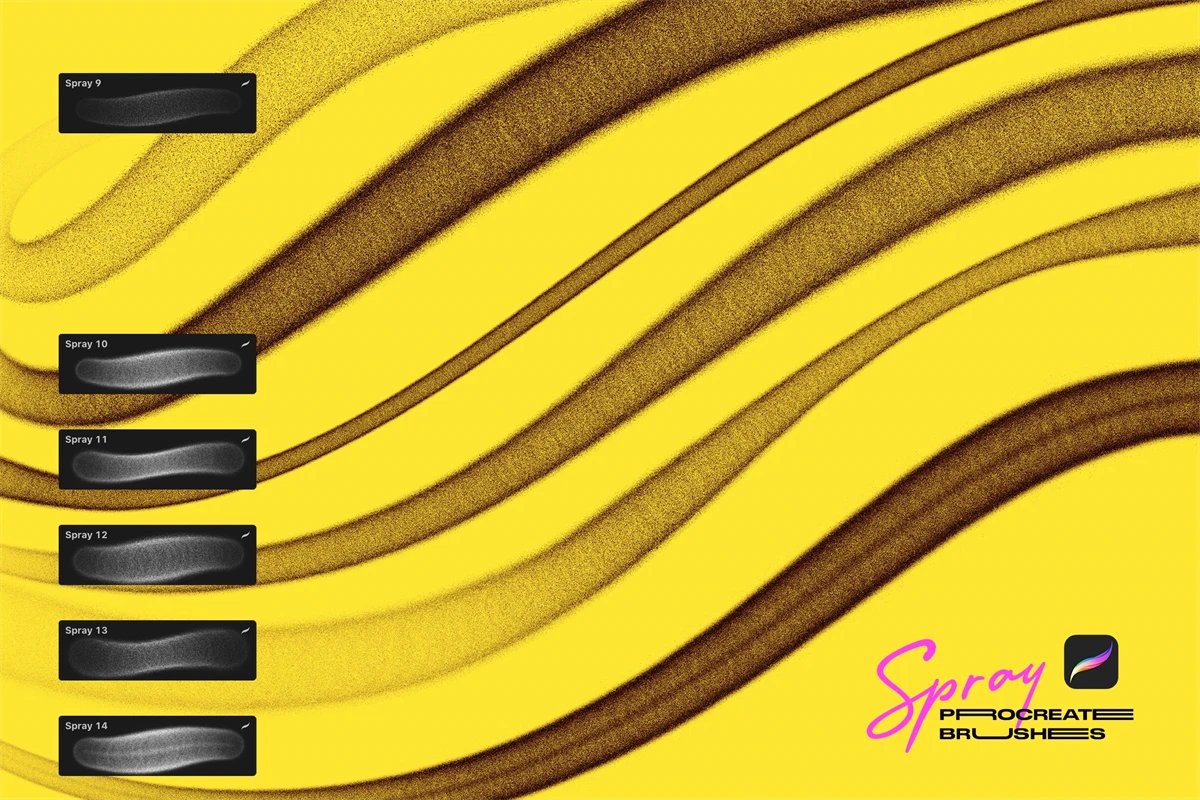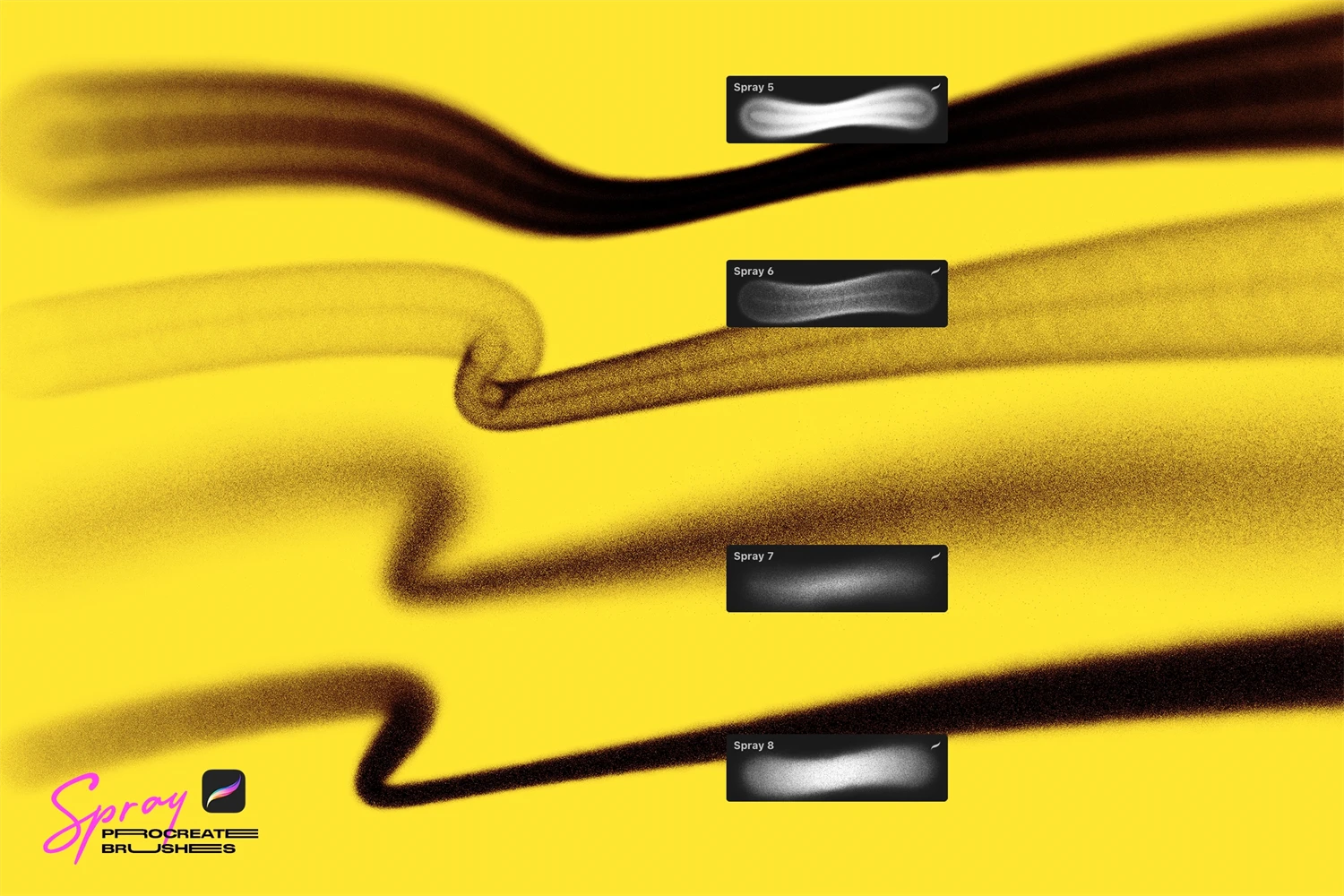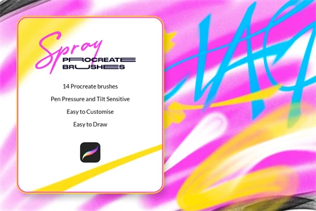 Get 14 spray paint brushes for Procreate drawing. Brushes imitates different spray caps - fat cap, thin cap, flat cap. Brushes are pen pressure sensitive. Due to this, the brushes mimic the spray paint well. Small pressure - fat and transparent line. Big pressure - thin line. This brush set is good for street art style drawing. Graffiti style and tags.
