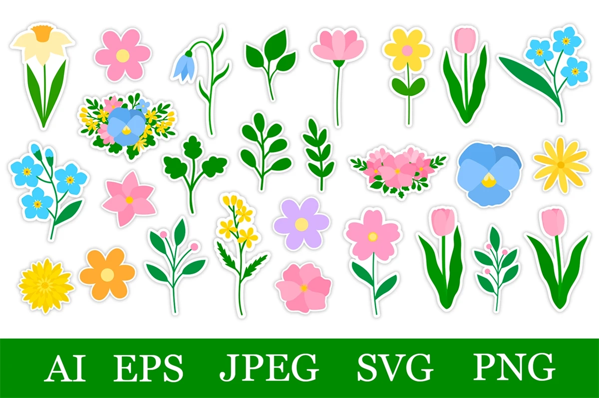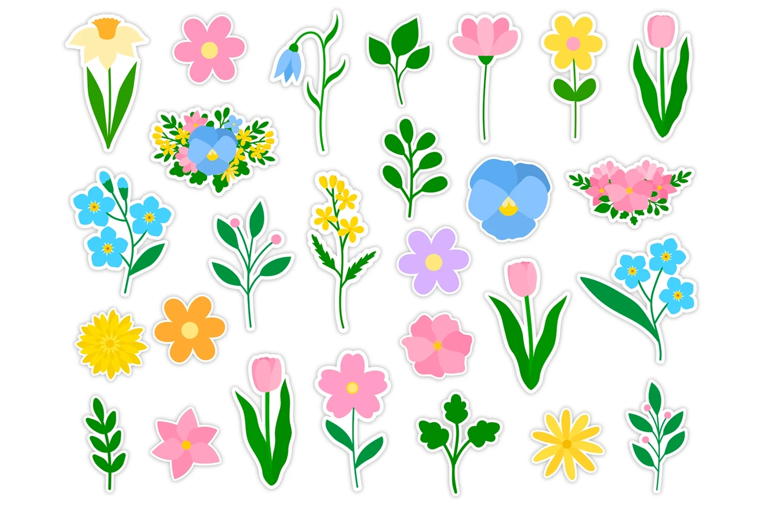Bundle of 27 Printable Spring Stickers.