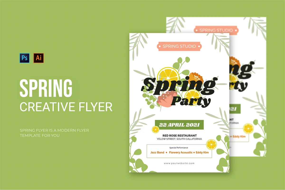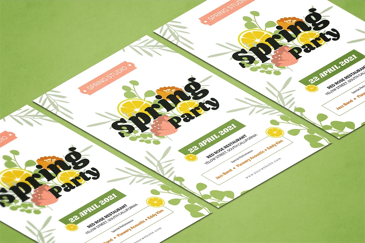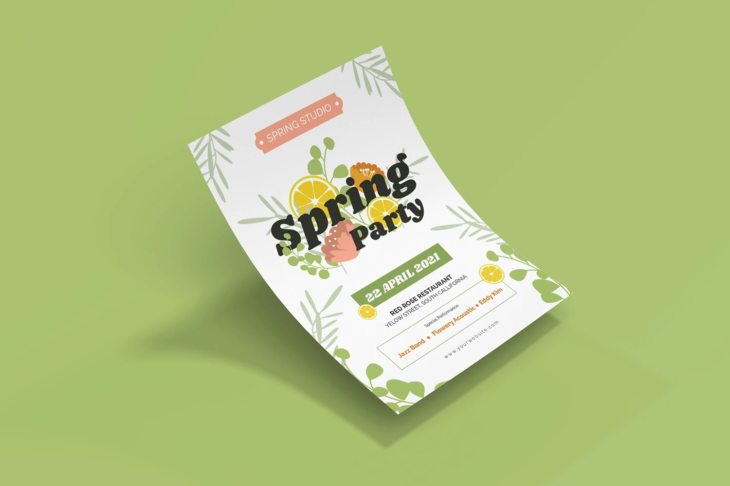 Spring Party - Flyer. This Flyer template is designed for your company's business needs. very clean and elegant, and also easily edited and adjusted to your liking