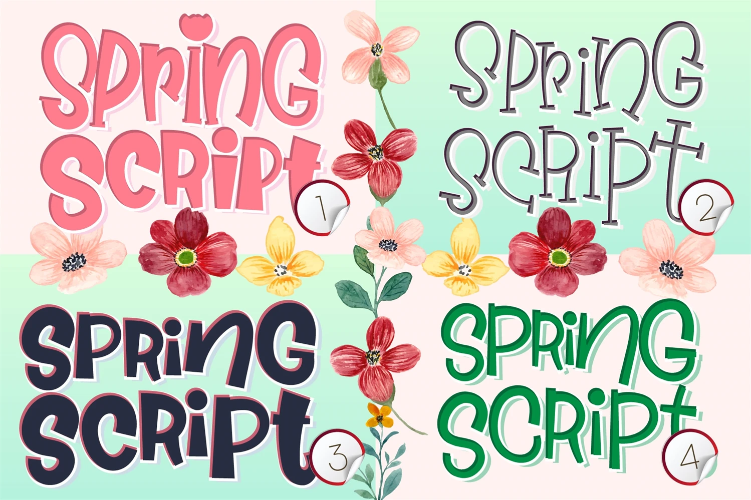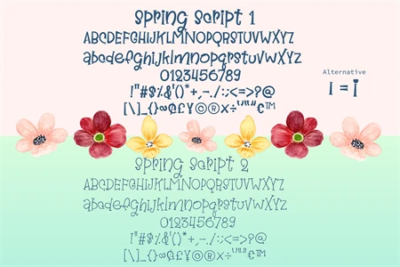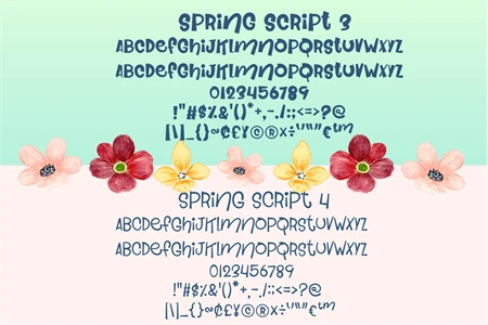 Spring Script Font is a fun, quirky, and informal display font that will bring an extra dose of personality to your projects. With its playful design, this font is perfect for cartoon titles, designs, and subtitles, instantly breathing life into your creations. Spring Script Font adds a touch of whimsy and charm, making it ideal for children's books, greeting cards, invitations, posters, and more. Get ready to unleash your creativity and make your designs stand out with this delightful font.