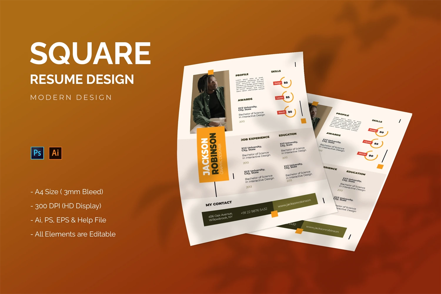 This is **Square - Resume Template** Get it now!, CV Resume for All business and personal needs. This design is great for your business and will make your interest, elegant, and easily editable according to your needs (**Adobe Illustrator, Adobe Photoshop**). You can use this CV Resume for personal purposes, or company purposes, I hope you enjoy this, Hope you Like it, and dont forget to rate it, Thanks.