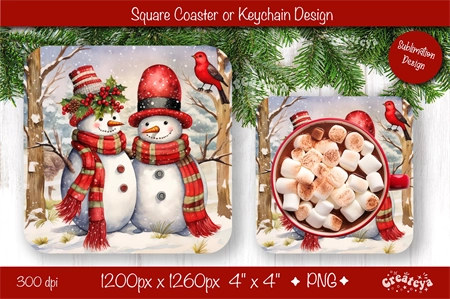 Square Coaster Christmas Coasters design with a cute Baby Animal PNG. These standard square coasters 4'' x 4'' are more than just a way to protect your table they bring a touch of snow-filled charm and a warm, fuzzy feeling to your home decor.