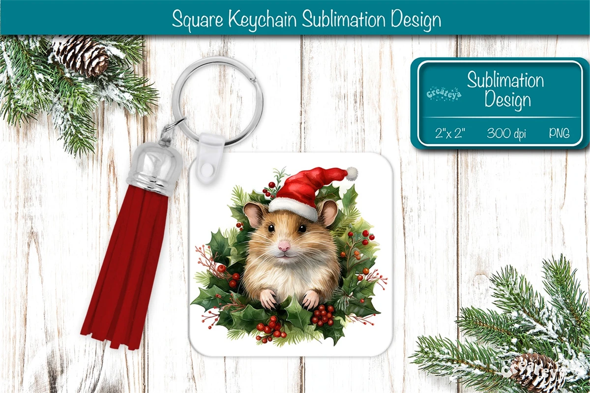 Square keychain sublimation Christmas keychain sublimation design with a cute Watercolor Animal Keychain PNG. Christmas Sublimation Square keychain with adorable snowman, vibrant colors, and lasting memories. Perfect as a delightful gift.
