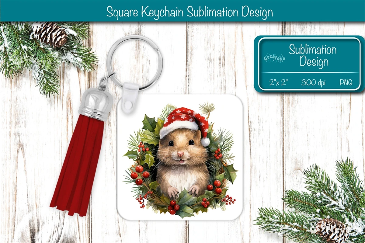 Square keychain sublimation Christmas keychain sublimation design with a cute Watercolor Animals Keychain PNG. Christmas Sublimation Square keychain with adorable snowman, vibrant colors, and lasting memories. Perfect as a delightful gift.