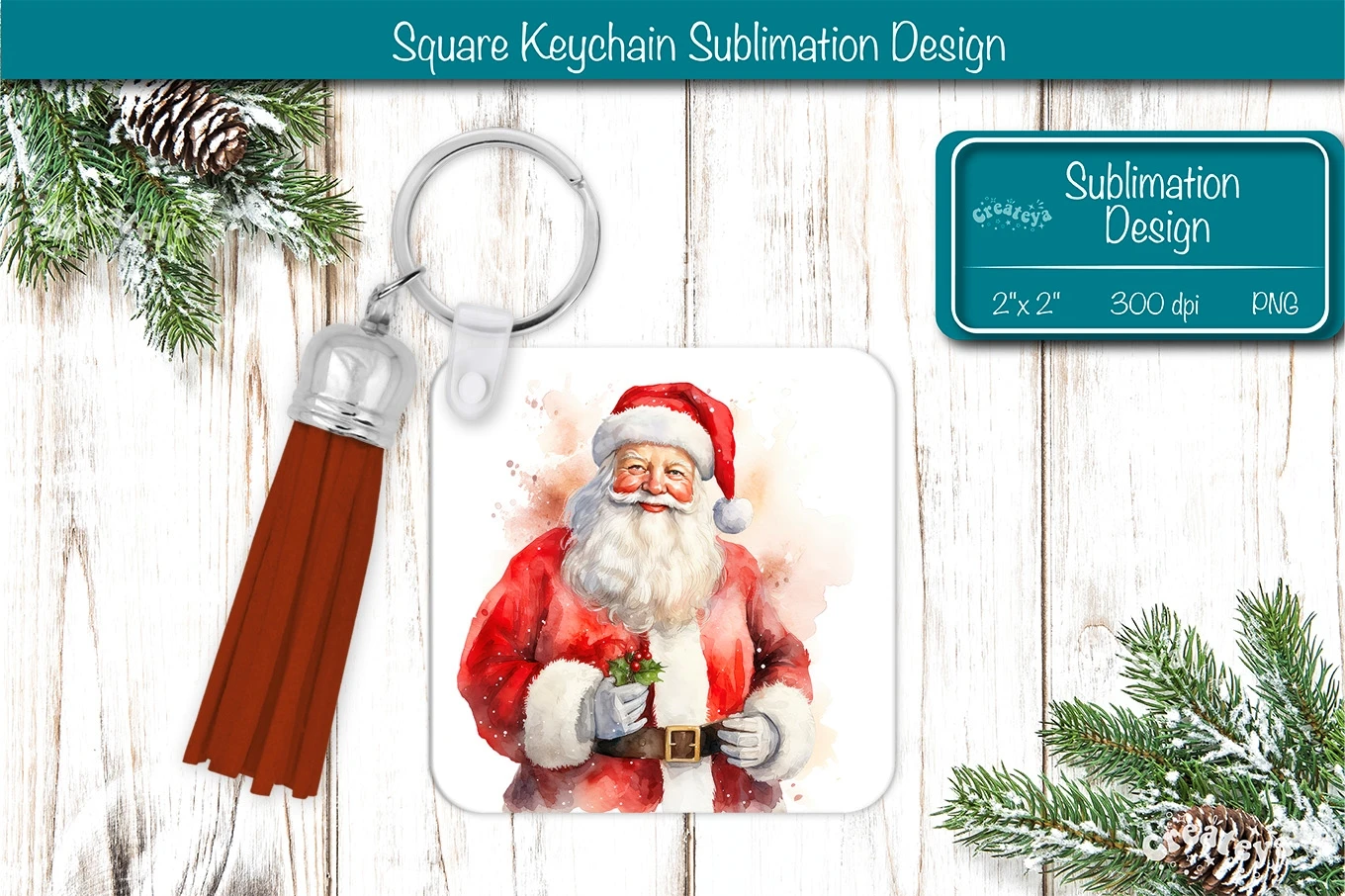 Square keychain sublimation Christmas keychain sublimation design with Watercolor Santa Keychain PNG. Christmas Sublimation Square keychain with adorable snowman, vibrant colors, and lasting memories. Perfect as a delightful gift.